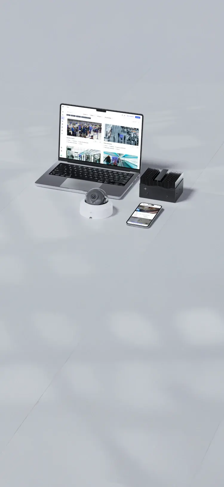 VMS+ combines best-in-class video management software with AI to serve as the control center for all devices. Accessible from any browser or mobile device, VMS+ lets teams manage locations, view video, and deploy AI agents from a single platform.